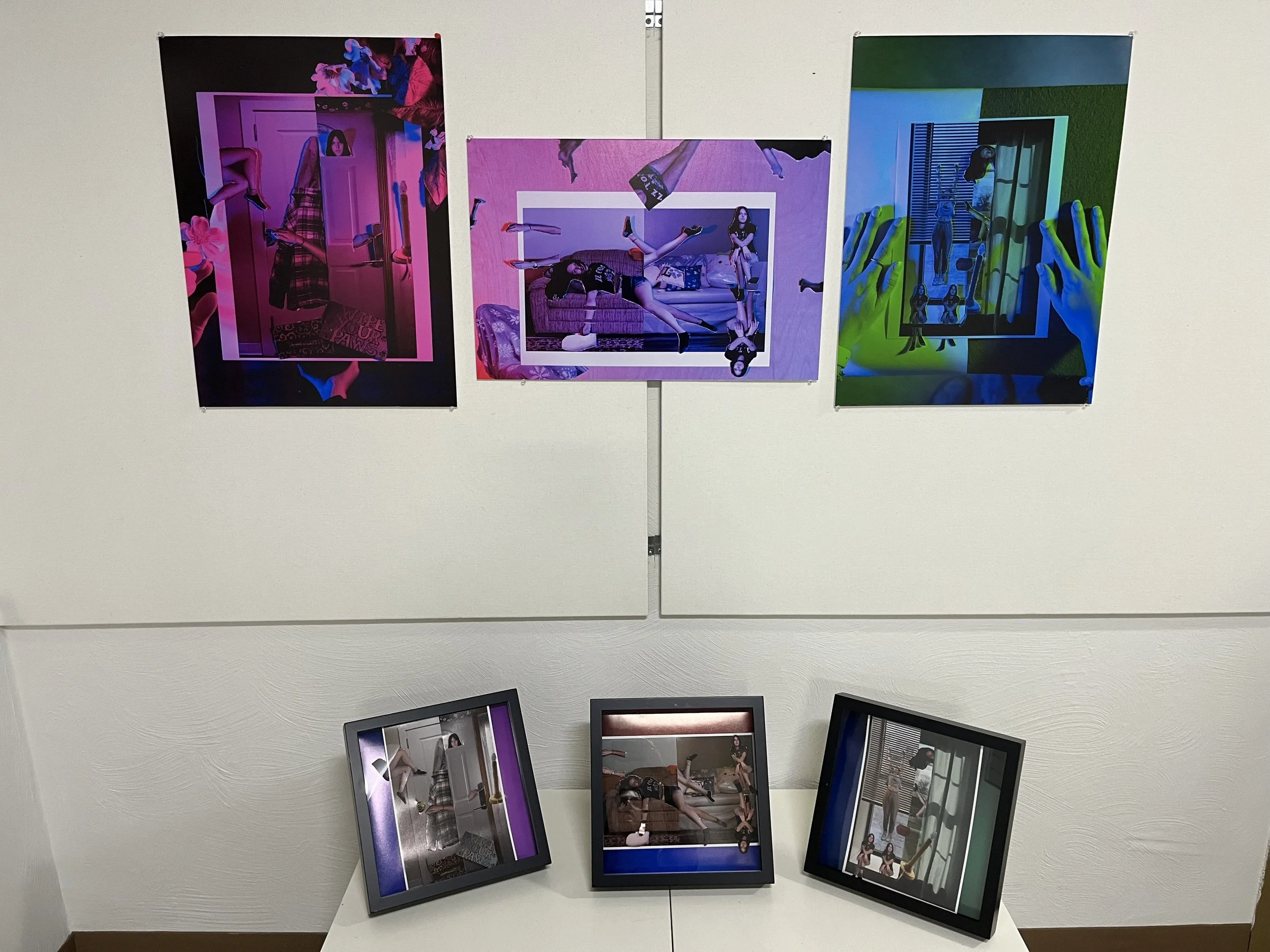 Home is a complex term that varies from person to person. I have been exploring my own identity in many places I have resided of the last few years by taking an introspective approach to the word home, its loss of meaning in my life, and the effect it has had on my sense of self and identity. Each piece in Untitled Photos from Home was created in a mundane location, inside my current living situations. I manipulated and transformed these spaces into metaphorical representations of my lost identity and sense of self I experience. Photography is a tool used to record histories, to document ephemeral moments in time. My intention is to layer and deconstruct these living environments to convey the complexities that help shape my own identity. Through the use of collaging, I penetrate through the fragmented reality of what the notion of home has become and where it leaves me within. Using theatrical lighting, I transform my emotions and feelings associated with these places and things, revealing the intricate tapestry of emotions that are woven into the idea of home. The goal of the project is to hopefully allow viewers to investigate home through their own environments.
